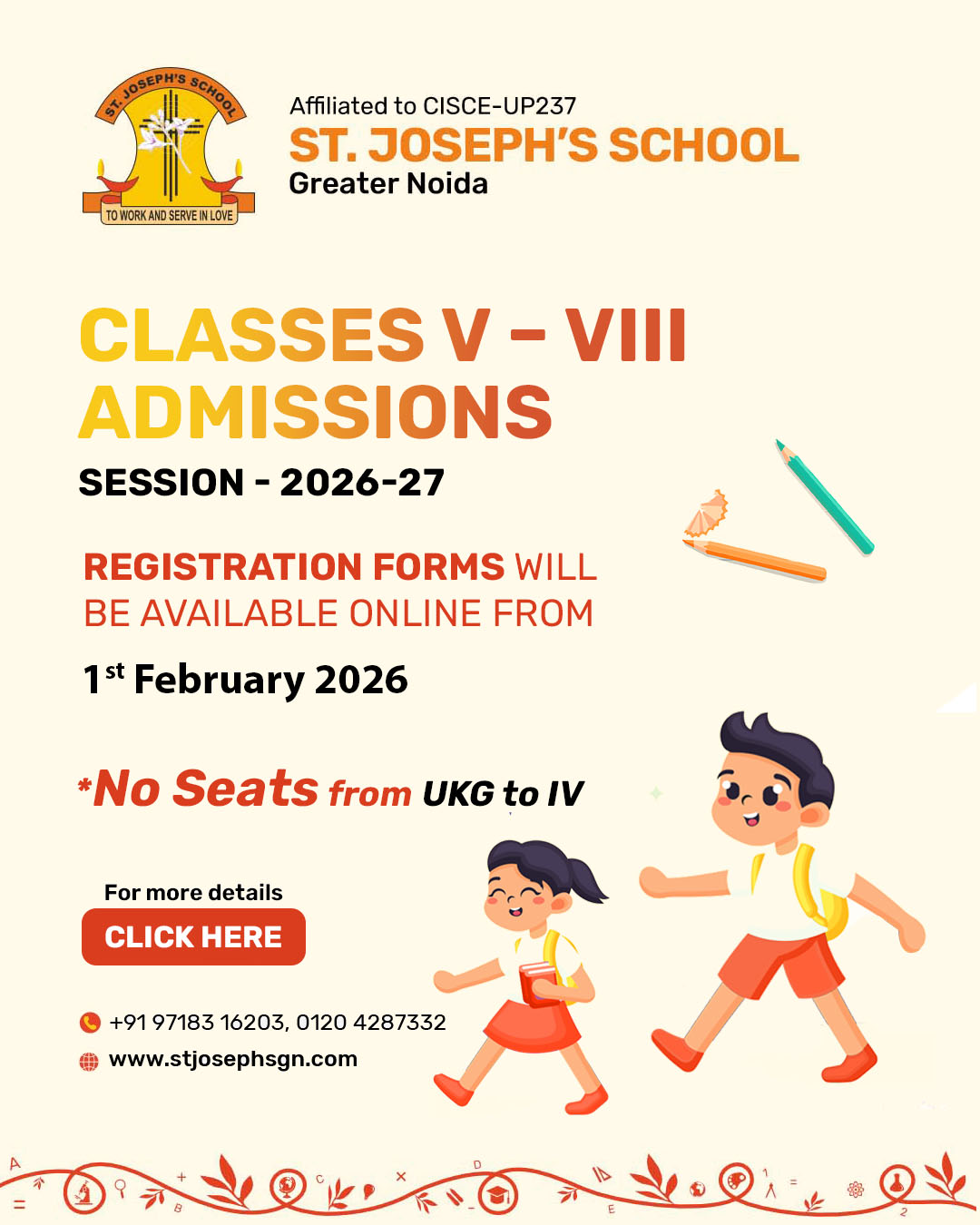 St. Joseph's School is an un-aided Christian minority institution owned by the Roman Catholic Diocese of Agra Education Society, Wazirpura Road, Agra-282 003, (U.P.)